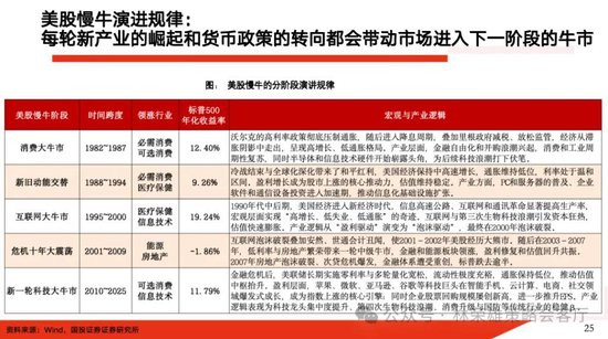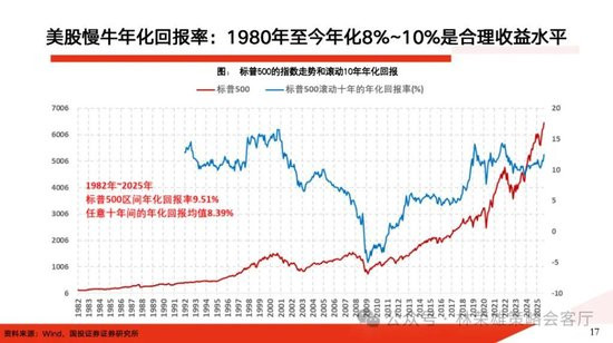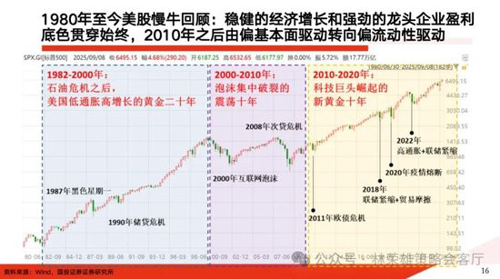 1、高增长期(1981-2000年)美国经济的持续扩张叠加科技革命(如互联网),标普500指数年化回报率达13-14%,其中盈利增长贡献约6-7%,估值提升贡献约2-3%,股息贡献约3-4%;