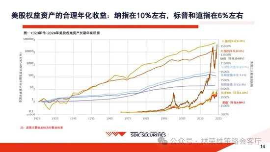 从收益分拆的角度,美股年化收益=盈利增长(4%-6%)+股息(2%-4%)+估值变化(-2%至+2%)