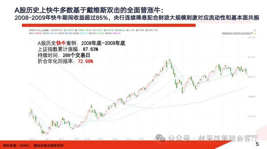 2)、A股历史上快牛多数基于戴维斯双击的全面普涨牛:2008-2009年快牛期间收益超过85%,央行连续降息配合财政大规模刺激对应流动性和基本面共振