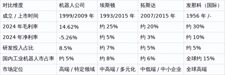 核心技术差距:伺服电机、减速器等高端零部件依赖进口,性能与成本不及发那科、安川。
